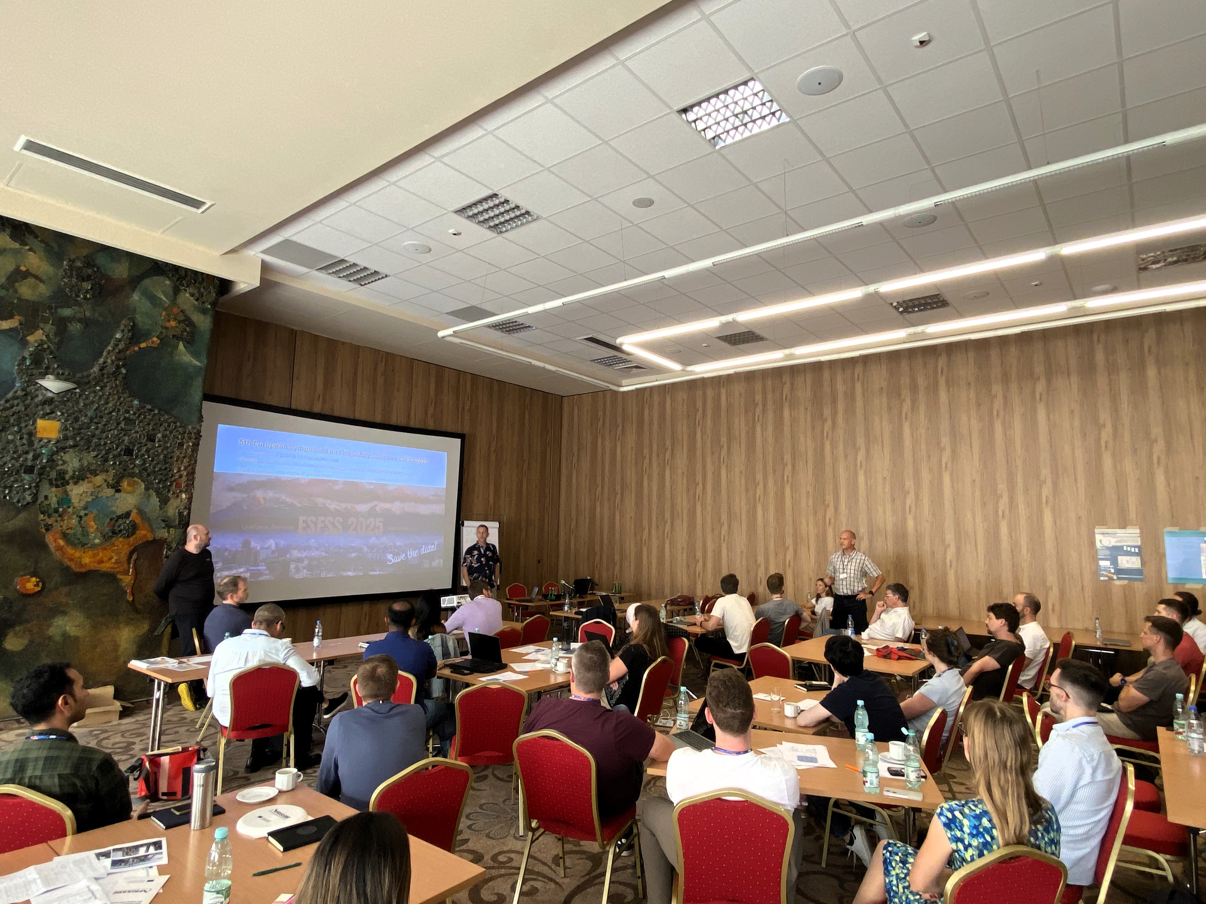The lecture topics covered essential areas such as fire behavior (including ignition and flame spread), smoke and heat control, evacuation strategies, probabilistic performance-based design, and various tools and approaches for designing fire-safe premises. These sessions led to fruitful discussions among both the lecturers and the audience, many of which continued informally outside of the scheduled sessions. Participants also had the chance to present their own research or work during a poster session. Two competitions were held, one judged by the lecturers and another by the participants, to award the best poster presentations.
