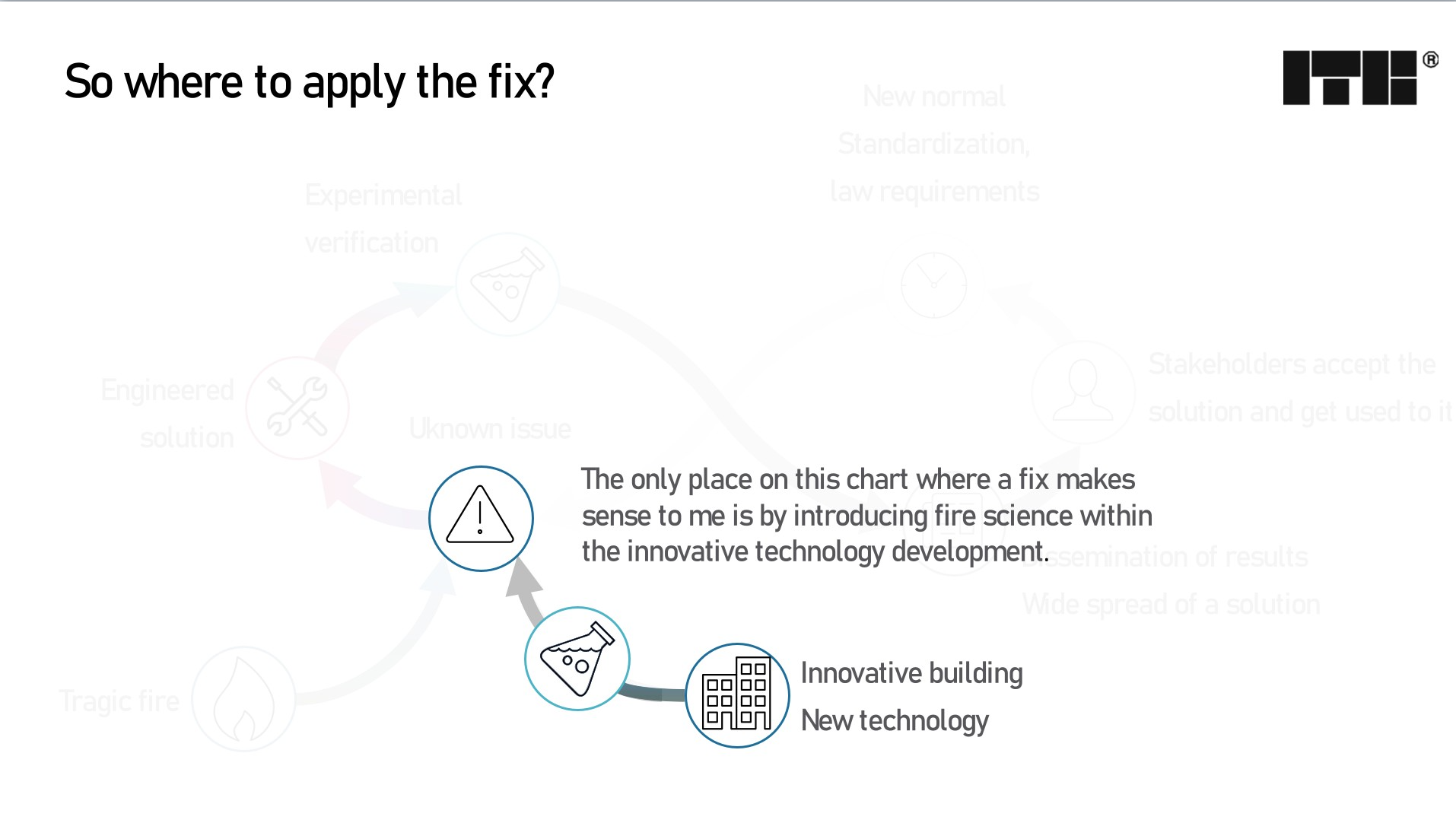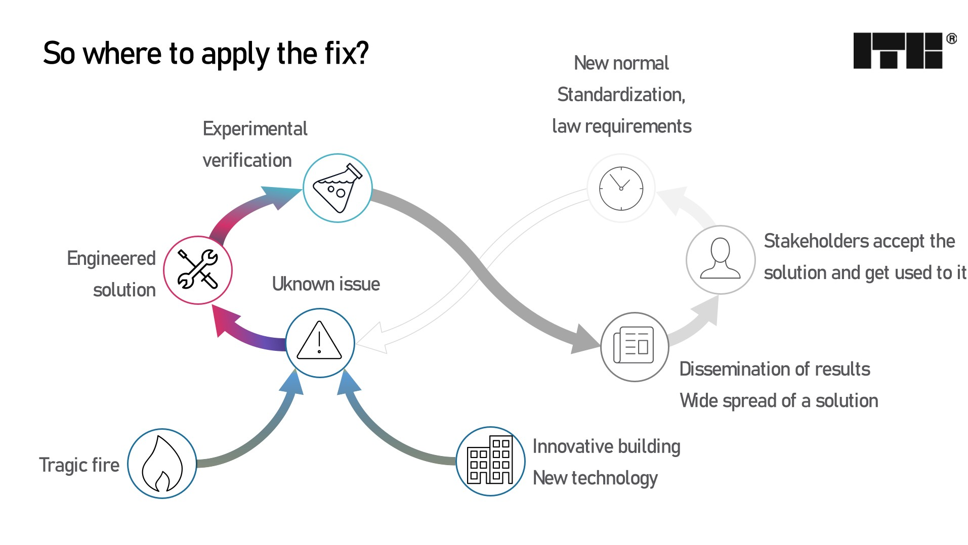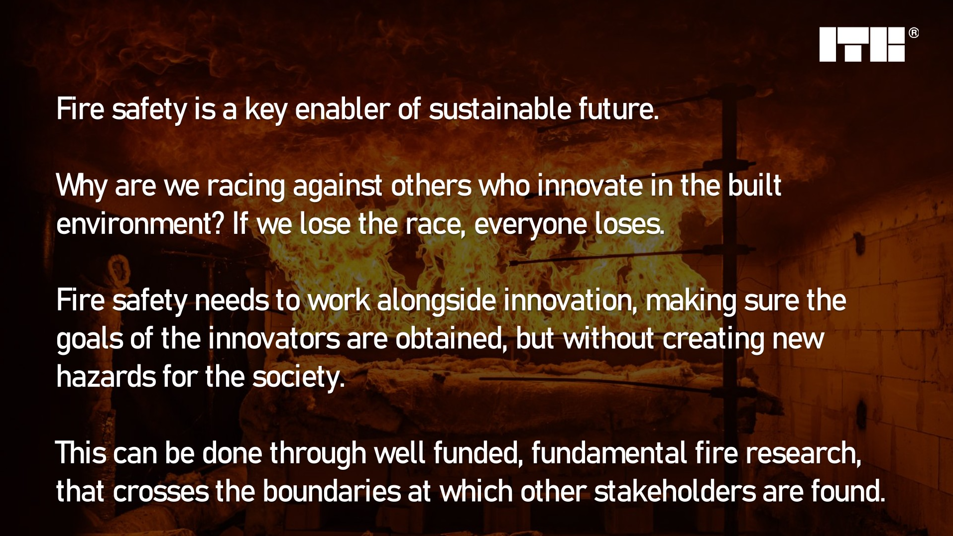 Later in the programme, Dr Andrea Lucherini, Senior Researcher, delivered a presentation titled “Fire safety of façades – does testing ensure fire safety?”. He addressed the limitations of current façade testing methods and the importance of harmonised European standards that accurately represent real-world fire performance, especially in buildings undergoing energy renovation.
